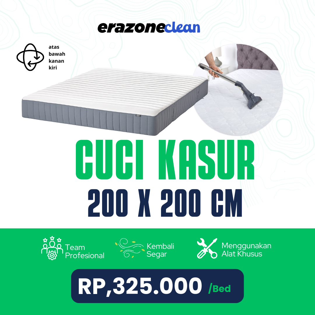 Tidur adalah fondasi kesehatan Anda. Pastikan investasi kenyamanan Anda—kasur Super King 200 x 200 cm—benar-benar bersih, higienis, dan bebas dari penghuni tak kasat mata. Kami hadir sebagai solusi pembersihan kasur profesional yang menyeluruh.